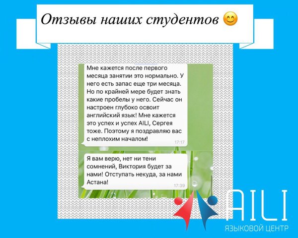 Языковой Центр «Aili» приглашает всех каждую субботу на разговорный клуб английского языка. Наш Speaking Club проводится каждую субботу для детей и взрослых отдельно: — для детей (5—12 лет)13:00—14:00 (бесплатно) — для взрослых 14:00- 15:00 (500 тнг) Темы каждый раз меняются! Проводятся местными преподавателями Просим всех желающих пройти регистрацию по номеру whatsapp Не упустите уникальную возможность улучшить свой уровень английского языка! instagram: aili_astana Speaking Club in Astana Разговорный клуб английского языка в Астане