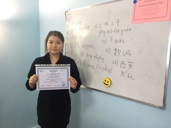 Поздравляем Амину с окончанием первым уровнем китайского языка на 150 слов! Желаем дальнейших успехов! Записывайтесь к нам на курсы китайского языка, для детей и взрослых!