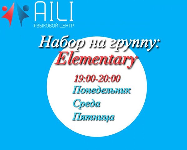 Объявляется набор на группу elementary. Занятия проводится 3 раза в неделю по часу (12 часов). Стоимость 10.800 тнг/мес. Записываемся по номеру:. Наш адрес: Майлина 10, 216 офис