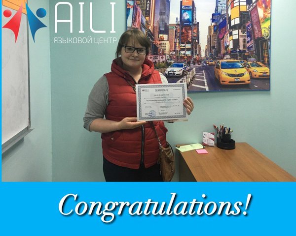 Поздравляем обладателя сертификата pre-intermediate, Вержанскую Татьяну! Желаем успехов в учебе и в жизни! Ждём вас снова на следующий уровень