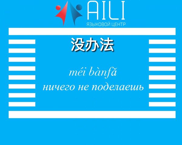 没办法 méi bànfǎ ничего не поделаешь. Данная фраза часто используется в тех случаях, в которых уже ничего не возможно изменить или поменять. 例如:你要是这么想我也没办法。Если ты так думаешь, то я ничего не смогу поделать.
