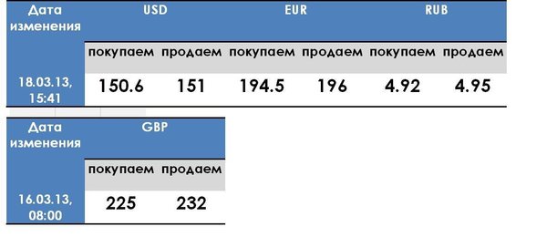 Курс валюты на 18.03.2013 год