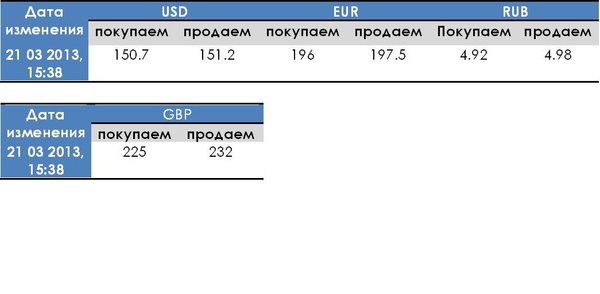 Курс валюты на 21.03.2013 год