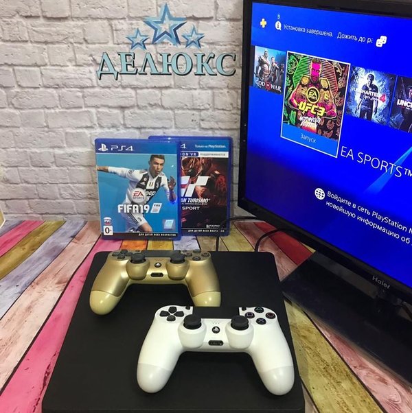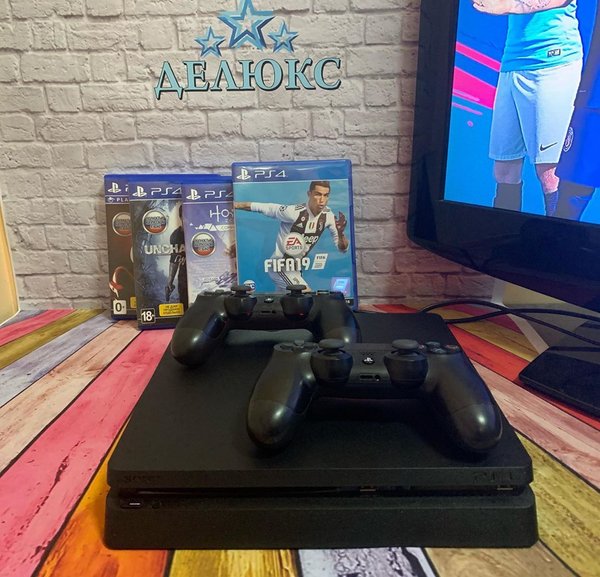 SONY PlayStation 4 Slim 500Gb —————————————————— Комплектация: 2 джойстика, HDMI шнур, шнур питания, USB кабель. —————————————————— Состояние отличное. —————————————————— Игры: FIFA 2019, Warface, Mortal combat, UFC 3. —————————————————— ️Цена: 119’000 тг —————————————————— ️Тел:товар находится по адресу: Б.Момышулы 15А) Код товара:F692