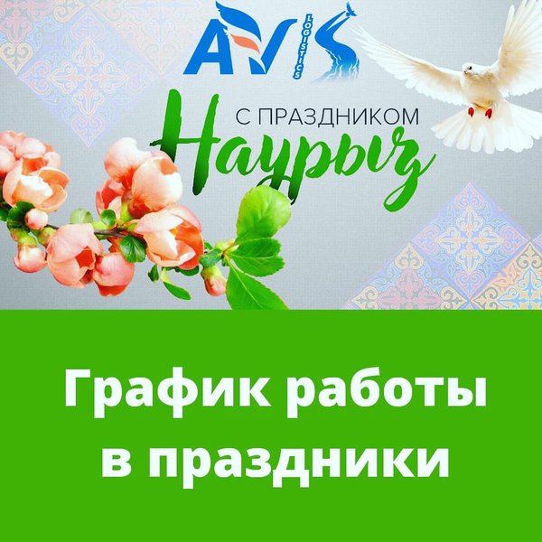 stics! Уважаемые клиенты и партнеры! От души поздравляем Вас с Весенним праздником Наурыз. Праздник, который наступает в день весеннего равноденствия, символизирует обновление и провозглашает начало нового жизненного цикла. Оставьте в прошлом все тревоги и беспокойства, возродитесь душой вместе с Наурызом! Желаю всем радости, чистоты помыслов, хорошего настроения, веры в людей и вечной весны в сердце! ГРАФИК РАБОТЫ 20.03.21г - 10:00 до 14:00 дежурная группа 21.03.21г по 24.03.21г выходные дни. С уважением Avis Logistics!