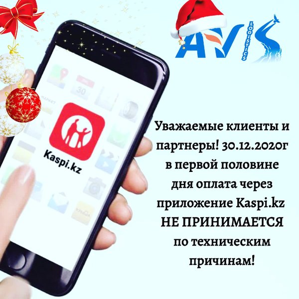 Уважаемые клиенты и партнеры!!! Уведомляем Вас,что завтра 30.12.2020 г оплата через приложение KASPI.KZ не принимается, в связи с техническими работами банка. Приносим свои извенения за причинённые неудобства! С наступающим Новым годом всегда Ваш Avis Logistics!