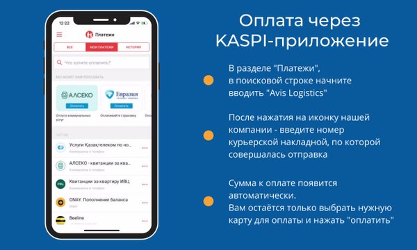 ‼ KASPI-ОПЛАТА ‼ У нас отличные новости Все физические лица могут оплачивать наши курьерские услуги через приложение Kaspi.kz ‼ВНИМАНИЕ ‼ Оплата наложенного платежа через Kaspi.kz НЕВОЗМОЖНА! Всегда Ваш, Avis Logistics