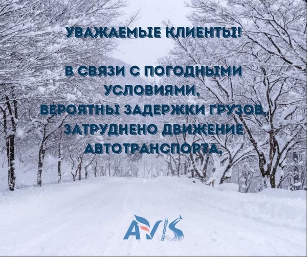 Уважаемые клиенты! В связи с погодными условиями ожидаются задержки по срокам доставки на территории Республики Казахстан. Всегда Ваш, Avis Logistics