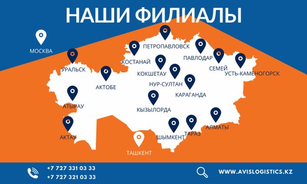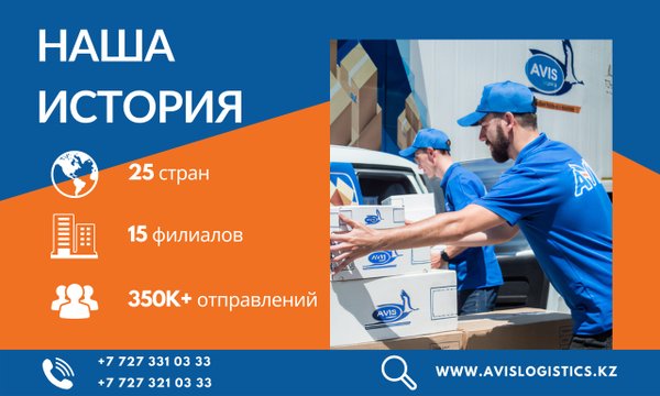 WhatsApp,, где примут Ваш заказ и ответят на Ваше сообщение в порядке очереди поступивших СМС. 5.Внимание! ‼️ ‼️ Все услуги на сайте а так же во всех меседжерах и соц.сетях нашей компании доступны в рабочее время это с 9:00 часов и до 18:00ч с ПОНЕДЕЛЬНИКА ПО ПЯТНИЦУ и в СУББОТУ с 10:00ч до 14:00ч по времени НУР-СУЛТАН. Все Ваши запросы обрабатываются в порядке очереди поступления заявки. Если Вы хотите вызвать курьера в выходной/праздничный день, вам нужно связаться с офисом в вашем городе, где они вам скажут все условия для осуществления Забора Вашей посылки в выходной и праздничный день! Контакты и телефоны офисов Вашего города вы можете найти на Нашем сайте разделе «Контакты» С уважением, Avis Logistics