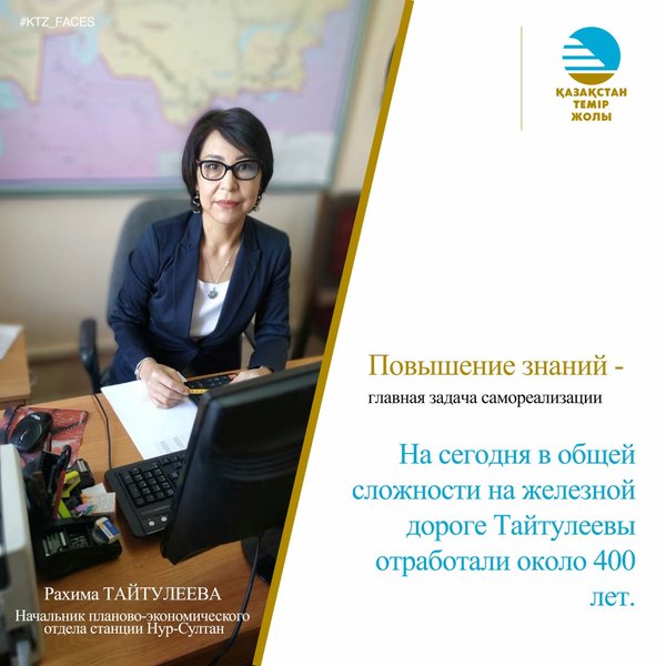 циалисты, которые сейчас на заслуженном отдыхе. Они многому меня научили, я до сих пор по возможности не устаю учиться новому. Отец всегда говорил, что если работать на железной дороге, то без куска хлеба никогда не останешься, настолько здесь все надежно и стабильно. Так станция стало моей второй семьей. Почти 30 лет пролетели, как один миг, — вспоминает Рахима Саньякасовна. Она родилась в семье, где воспитывалось 10 детей. Члены ее семьи пришли по стопам отца на стальную магистраль. На сегодня в общей сложности на железной дороге Тайтулеевы отработали около 400 лет. На станции Рахима Саньякасовна встретила свою вторую половинку, появились на свет две дочки. Рахима Саньякасовна создала для своего коллектива такие условия, в которых каждый может по максимуму реализовать свои способности, расширить профессиональный кругозор. На станции отмечают, что в планово-экономическом отделе сосредоточены специалисты высокого класса, во всем у них порядок и в шутку говорят, что они настолько профессиональны, что могут разложить даже ноль, а это не только идеальный расклад, но и высший пилотаж экономиста. За годы ее работы на станции несколько раз менялось руководство. Каждый раз новый начальник станции проявлял себя не только знающим и умелым руководителем, но и талантливым организатором. По мнению Рахимы Саньякасовны, экономист на железной дороге должен быть строгим, принципиальным и объективно смотреть на ситуацию, учитывать не только особенности работы своего структурного подразделения, но и цели развития отрасли в целом. Подробнее: