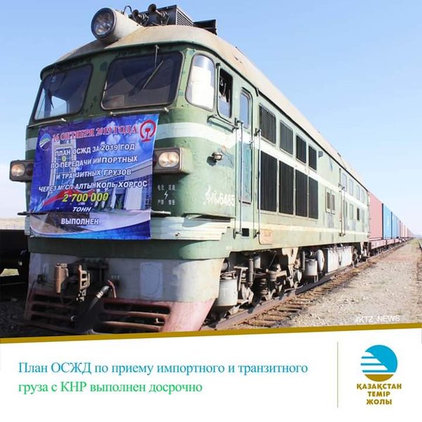 2019 жылғы 16 қазанда сағат 9.30-да Алтынкөл станциясына (ҚР) Қорғас станциясынан (ҚХР) транзиттік жүктері бар пойыз келді, ол басқа тасымалданатын өнімдермен бірге теміржолдар арасындағы ынтымақтастық ұйымының (ТЖЫҰ) 2019 жылғы жоспарын мерзімінен бұрын орындауға мүмкіндік берді.