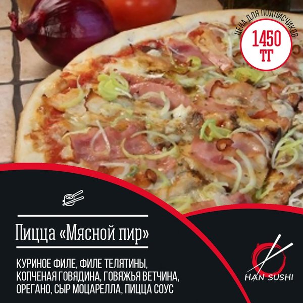 А не пора ли закатить пир? Пора! Пицца «Мясной пир» покорит вас своим вкусом Заказывайте на нашем сайте: ___________________________________________________