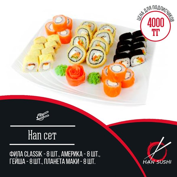 Идеальный план на вечер: Отменить все дела; Заказать Han сет от Hansushi; Наслаждаться приятным вечером! _________________________________________________