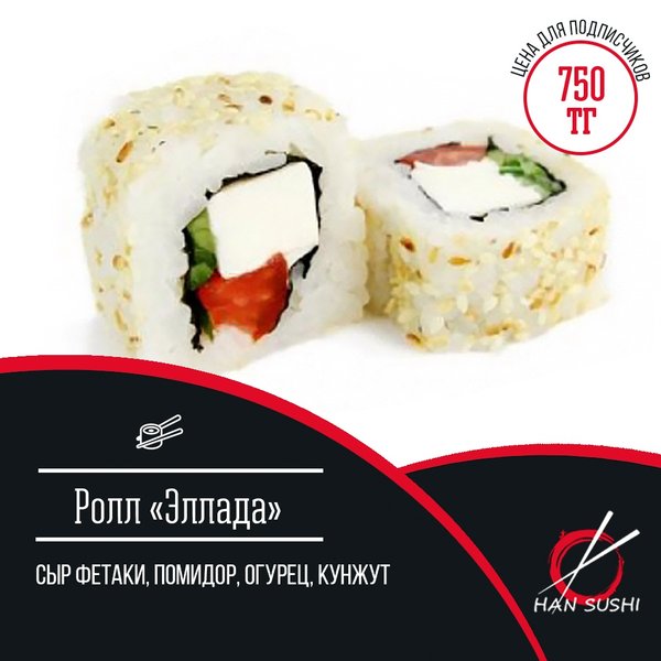Нежный и яркий, тот самый ролл, про который можно с уверенностью сказать — ролл со вкусом! Ролл Эллада готов порадовать свежайшими ингредиентами, а именно сыром фетаки, помидором, огурцом и кунжутом! Сделать заказ вы можете на сайте. ___________________________________________________