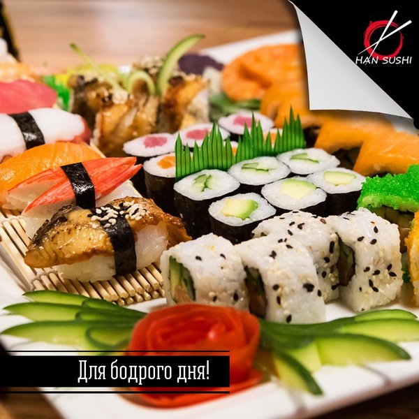 Бодрый и насыщенный день — это день, который проведен с роллами Hansushi! Закажи прямо сейчас: ___________________________________________________