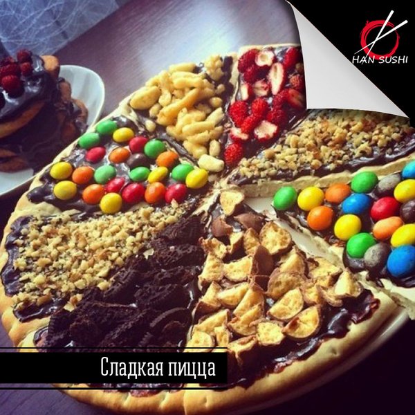 Пицца обычно ассоциируется с оливками, тянущимся тестом, сыром пармезан, спелыми томатами и разными копченостями. А как на счет сладких десертных пицц? Только представьте: чудесный сливочный крем, тесто с хрустящей корочкой, нежное маскарпоне, свежие сочные ягоды, шоколадный соус _________________________________________________