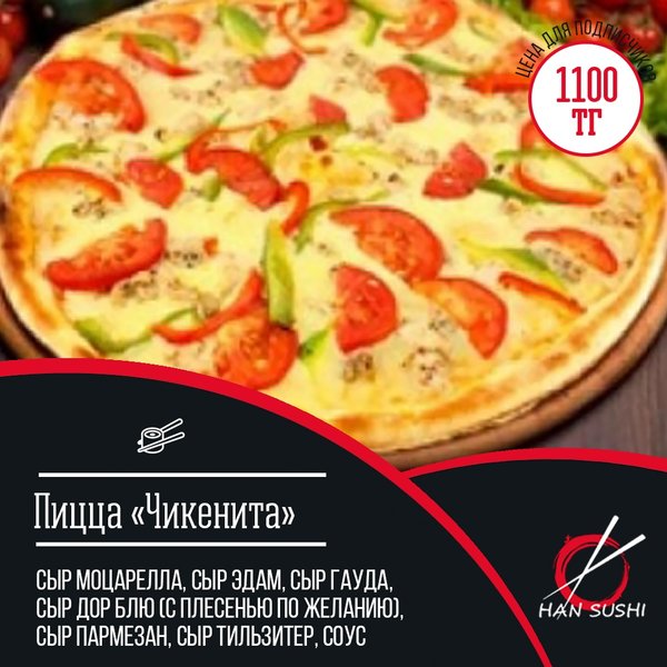 Сочная пицца «Чикенита» подарит вам новые, яркие гастрономические впечатления! Она с нетерпением ждет вас на сайте ___________________________________________________
