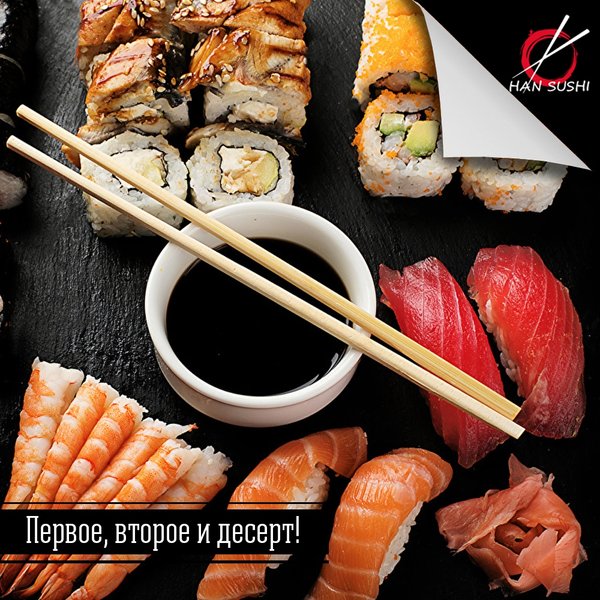 Мисо на первое, роллы на второе, и про десерт не забудьте В меню Hansushi можно найти блюда на любой вкус! Оформить заказ можно на сайте _________________________