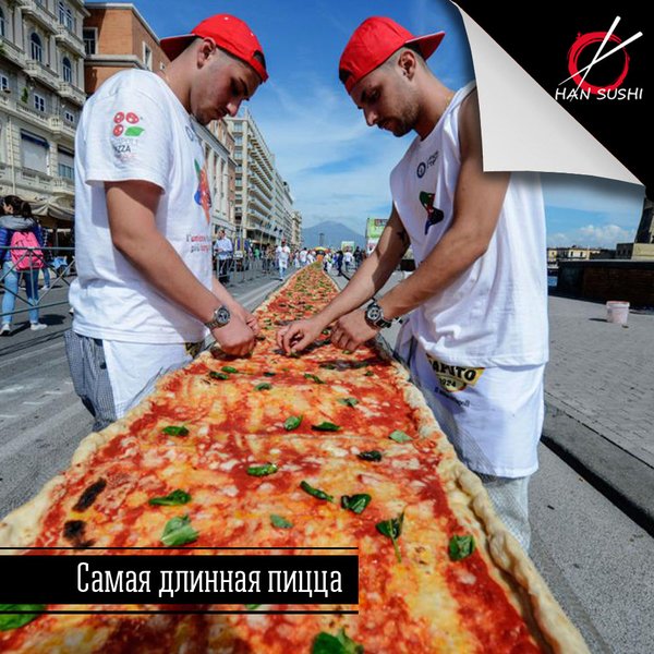 В городе Фонтана (Калифорния, США) испекли самую длинную в мире пиццу. Длина блюда составила 2092 метра. В установлении рекорда участвовали несколько десятков поваров. Они начали готовку в 7 вечера 11 июня и закончили лишь на следующее утро. Кулинарное достижение было зафиксировано представительницей Книги рекордов Гиннесса, которая присутствовала при готовке. Как отмечает L.A. Weekly, участникам конкурса было запрещено выбрасывать продукты, которые не были съедены. Все остатки необходимо было пожертвовать нуждающимся. Такие дела. _____________… — Читать дальше