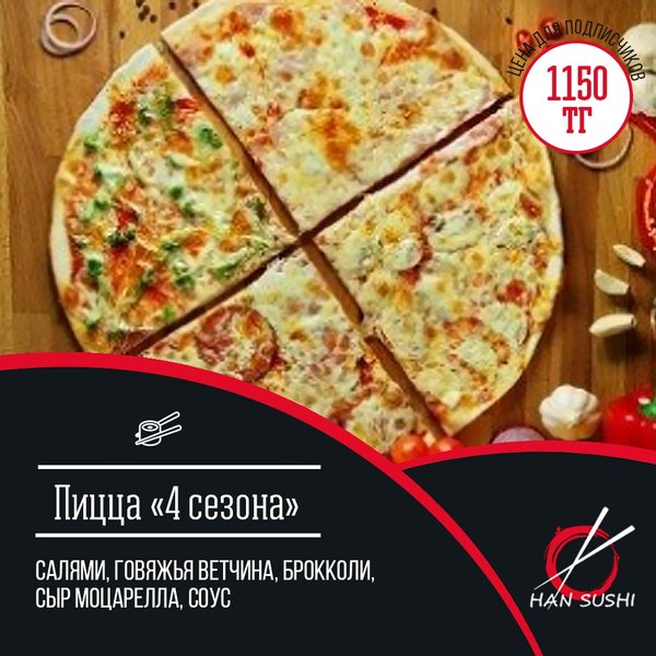 Пицца «4 сезона» — идеальный выбор для тех кто не может сделать выбор! Ждем вас на сайте _________________________________________________