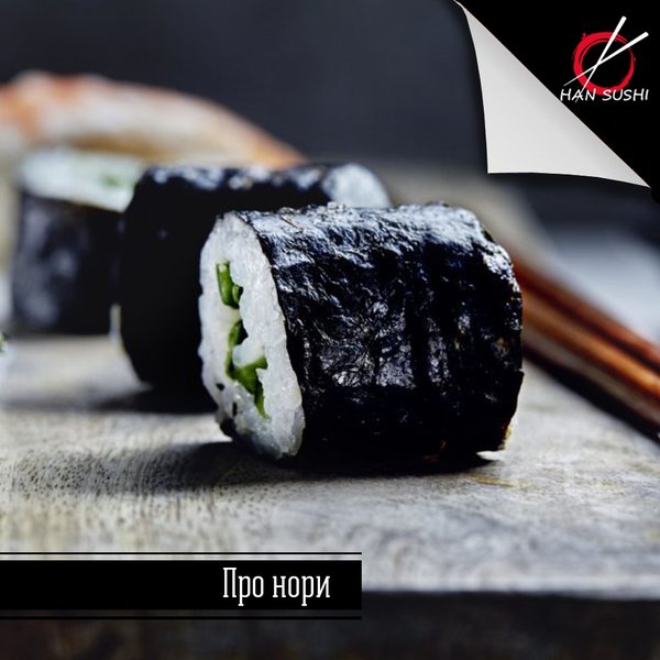 Водоросли Нори — спрессованные, жаренные водоросли, которые используются в качестве каркаса, силовой основы целостности ролла. Именно они удерживают начинку внутри ваших любимых роллов, позволяя придать ей форму. Также используются в качестве обертки для маки роллов Солоноватые листы жаренных водорослей нори придают роллам морской привкус, а также насыщают его многими полезными свойствами! ___________________________________________________