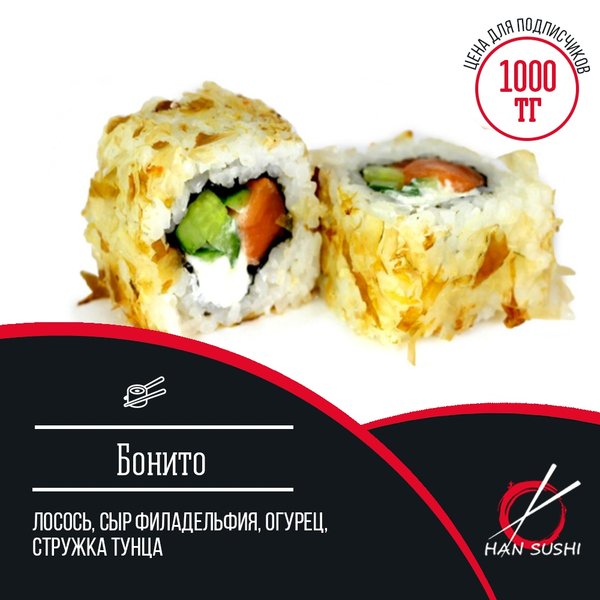 Яркий ролл Бонито любим многими и не просто так! Его компоненты идеально сочетаются и создают неповторимый вкус. Для того что бы и вы полюбили этот чудо-ролл нужно просто заказать его на сайте ___________________________________________________