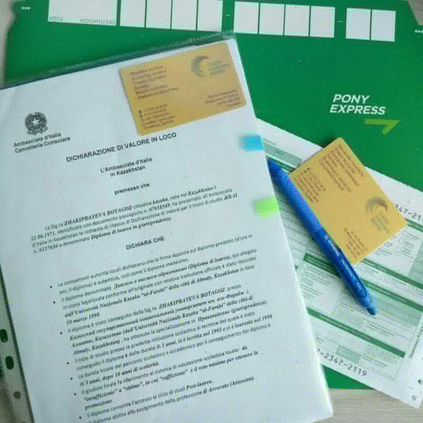 Легализация диплома для Италии готова. Dichiarazione die valore in loco (DV) доставка для клиента до Милана.