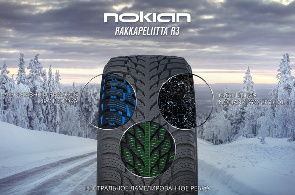 Nokian Hakkapeliitta R3 Комфорт в зимних условиях Новая нешипованная шина нордического типа Nokian Hakkapeliitta R3 представляет собой превосходный баланс безопасности и комфорта. Она легко адаптируется к любым погодным условиям, обеспечивая отличное сцепление и первоклассную управляемость, что делает вождение предсказуемым и приятным. Nokian Hakkapeliitta R3 — прекрасный выбор для тех, кто ценит безопасность, комфорт и экологичность. БЕССРОЧНАЯ РАСШИРЕННАЯ ГАРАНТИЯ Вы приобретаете шину Nokian Tyres c Расширенной гарантией – мы меняем е… — Читать дальше