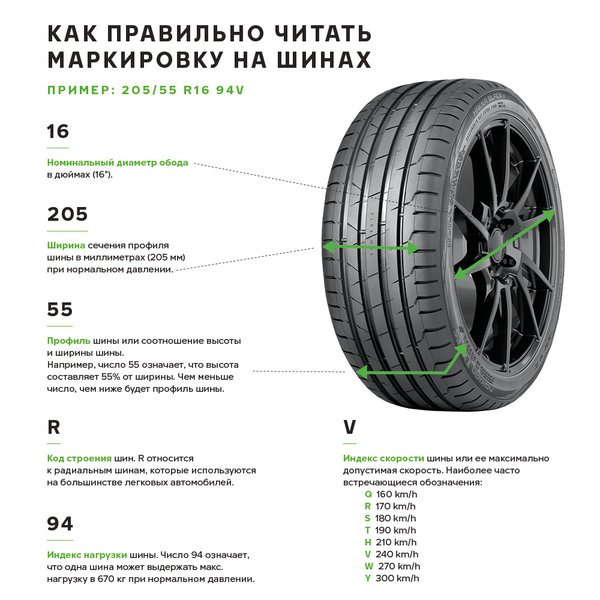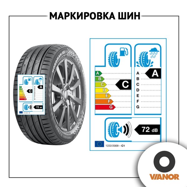 сопротивления качению шины и ранжируется от A до G. Сцепление на мокрой поверхности Критерий характеризует длину тормозного пути на мокрой поверхности. Шины имеют оценку от A до F. К примеру, разница длины тормозного пути между шиной с оценкой A и шиной с оценкой F равна 18-ти метрам, при условии, что автомобиль движется со скоростью 80 км/ч. Внешний шум Критерий указывает на уровень шума, который возникает при движении автошины, измеряется в децибелах. Шины с шумом качения до 60 дБ оцениваются как самые тихие, а шины, у которых шум качения превышает 74 дБ являются очень шумными. ---------------------------------------------------------------------- Поэтому при подборе шин, стоит обращать внимание на множество параметров. За консультацией Вы можете обратиться к нашим продавцам-консультантам сети шинных центров VIANOR ---------------------------------------------------------------------- г. Астана, ул. Шоссе Алаш 45.