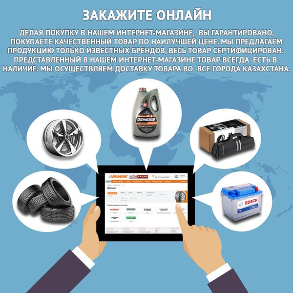 Вы определились с выбором товара, тогда жмите на кнопку «В корзину», заходите в корзину и оформляйте заказ. В корзине Вы можете изменить количество товара и выбрать нужное Вам. Если все правильно заполнено жмите кнопку «Оформить заказ». Для оформления заказа Вам необходимо зарегистрироваться, если Вы зарегистрируетесь как юридическое лицо, внесите все данные о компании для правильного оформления документов. Также Вы можете воспользоваться кнопкой «Быстрый заказ», Вам потребуется указать только имя и номер телефона, и наш менеджер немедленно свяжется с Вами для продолжения выполнения заказа. Вам только нужно определиться со способом оплаты и доставки товара. Наш сайт: admtyres.kz ------------------------------------------ г. Астана, ул. Шоссе Алаш 45.
