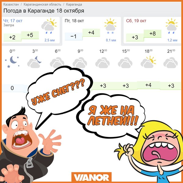 Зима приходит без стука Не дайте ей застать вас врасплох Срочно спешите к нам, в шинный центр «VIANOR» — мы подготовим ваш автомобиль к любым погодным условиям! Наши адреса: ⠀ г. Астана, ул. Шоссе Алаш 45.