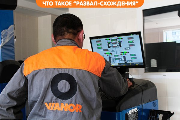 наружу, и отрицателен, если наклон внутрь. Схождение Самый критический угол установки колес — это угол схождения. Чрезмерно положительное или отрицательное схождение вызывает повышенный износ покрышек. Схождение — это разница расстояний, измеренных по передним и задним точкам дисков колес, в горизонтальной плоскости. Схождение измеряется в миллиметрах. Схождение может так же выражаться в угловых мерах, то есть в градусах. Результатом правильно сделанного развала схождения будет: Устойчивость автомобиля Управляемость автомобиля Снижение заносов автомобиля Снижение износа шин Экономия топлива В шинном центре VIANOR вам не только помогут с выбором резины и её установкой, но и окажут всевозможные услуги СТО Наши адреса: ⠀ г. Астана, ул. Шоссе Алаш 45.