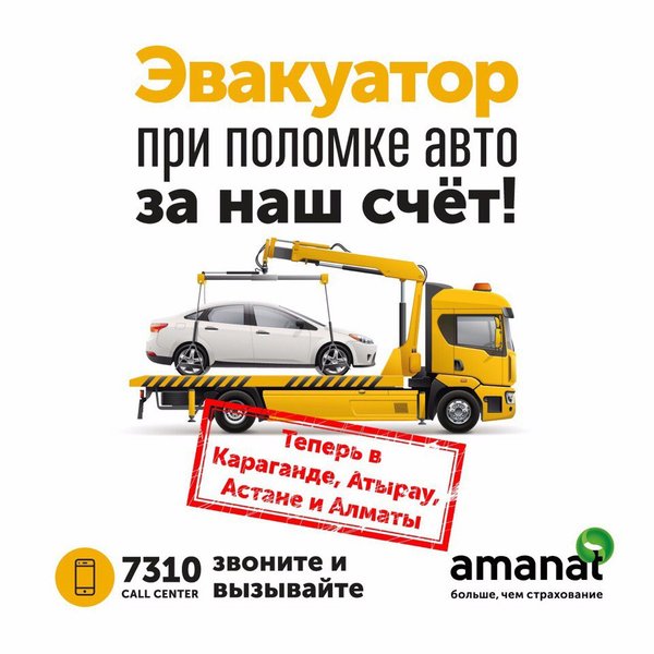 сть действующий договор автострахования Amanat (ОС ГПО ВТС и все виды КАСКО), и НЕДОСТУПНА Клиентам других компаний, которые обслуживаются у нас по техпомощи по выписанным сертификатам. И если ранее услуга оказывалась только для клиентов в г.г. Алматы и Астана, то с 15 ноября стала доступна нашим клиентам в гг. Атырау и Караганда. Хорошего дня!