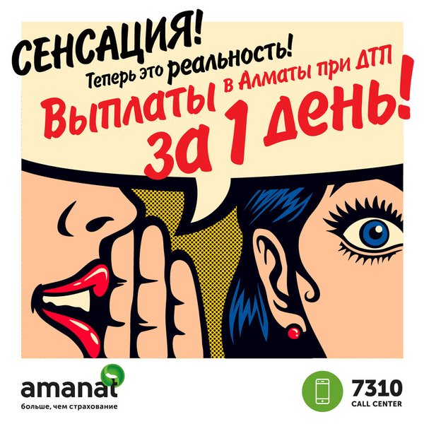 ыплату как пострадавшей стороне. На место ДТП выехал страховой комиссар. Я заполнила необходимые документы, он выдал направление на оценку, снял фото моих документов. По приезду ДПС подписала протокол и поехала домой, а он остался дожидаться еще каких то документов. На все ушло не более 30 минут! <…> После оценки на третий или четвёртый день я могла уже забирать деньги. Касса, причём, находится здесь же в Amanat (в другой страховой как-то пришлось ехать в банк). Насчитали достаточно», — Aluasha Sinh. Это только треть отзывов, которые оставили клиентки за последние две недели. Мы рады, что для девушек Amanat стал другом, который всегда поможет. Мы не делим клиентов по гендерному признаку. Для нас одинаково важны мужчины и женщины. Но мы знаем, что девушкам за рулём часто приходится сложнее. Не смогла с утра завести машину — услышала от соседа снисходительное: «Ты что, первый день за рулём?! Надо было ночью вставать, прогревать, в такой-то мороз!». Кончился бензин на дороге: «Ох, уж эти женщины! Ну как можно не смотреть на уровень топлива?!». Amanat — это возможность получить помощь по первому звонку. И при этом никто не будет вас осуждать или покровительственно посмеиваться (даже не знаем, что хуже). «Поддержка. Уважение. Равенство». Это мог бы быть наш слоган.