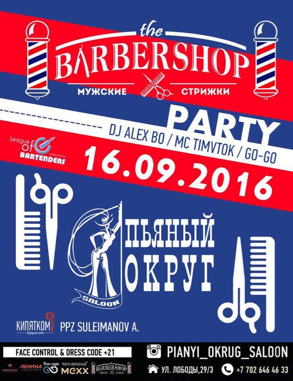 Доброе утро друзья Надеемся, вы уже успели сделать себе стильные причёски, ведь уже в эту пятницу @pianyi_okrug_saloon совместно с The Barbershop Karagandy устраивают самую жаркую вечеринку осени Множество подарков и конкурсов не пройдут мимо этого события! Приходи и ты! Будет стильно!