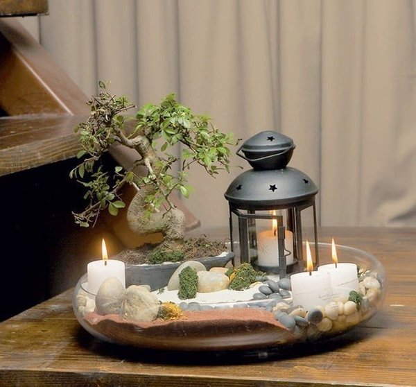 Фабрика идей (28.01.2017): Мини сад своими руками — это просто! Чтобы создать сад в миниатюре вам понадобятся следующие инструменты и материалы: • глубокое блюдо из прозрачного стекла большого диаметра, • небольшое деревце, типа бонсай, • гладкая галька разных цветов и размеров, • мелкий речной песок, красного и белого цвета, • мох, искусственный, • подсвечник-фонарь, свечи.