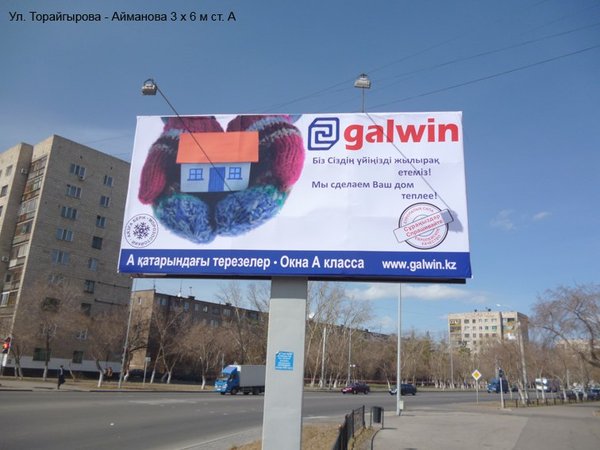 Билборд ТМ galwin в городе Павлодар (ул. Торайгырова/Айманова).