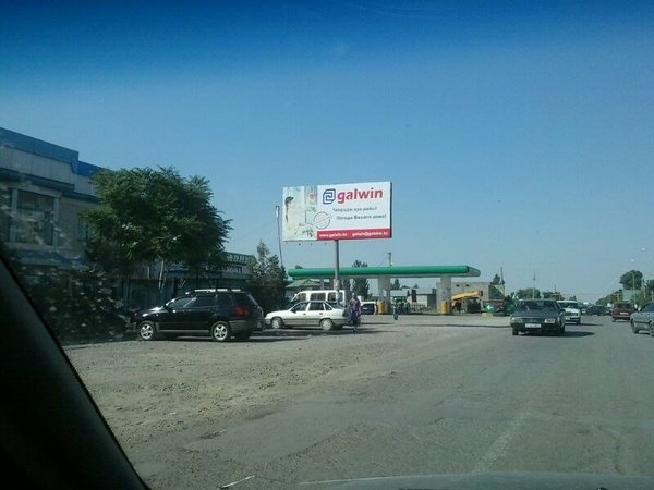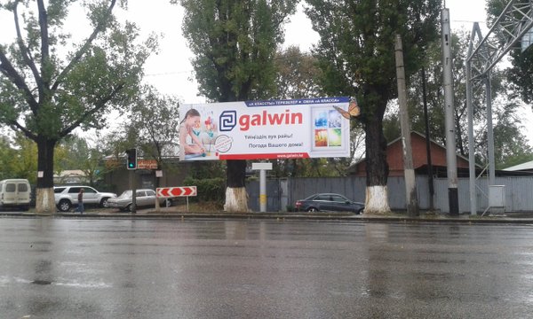 Билборды в городе Тараз: 1) Билборд galwin (10 мкр. Кайкармет); 2) Билборд galtech (ул. Айтиева-Жунисалиева).