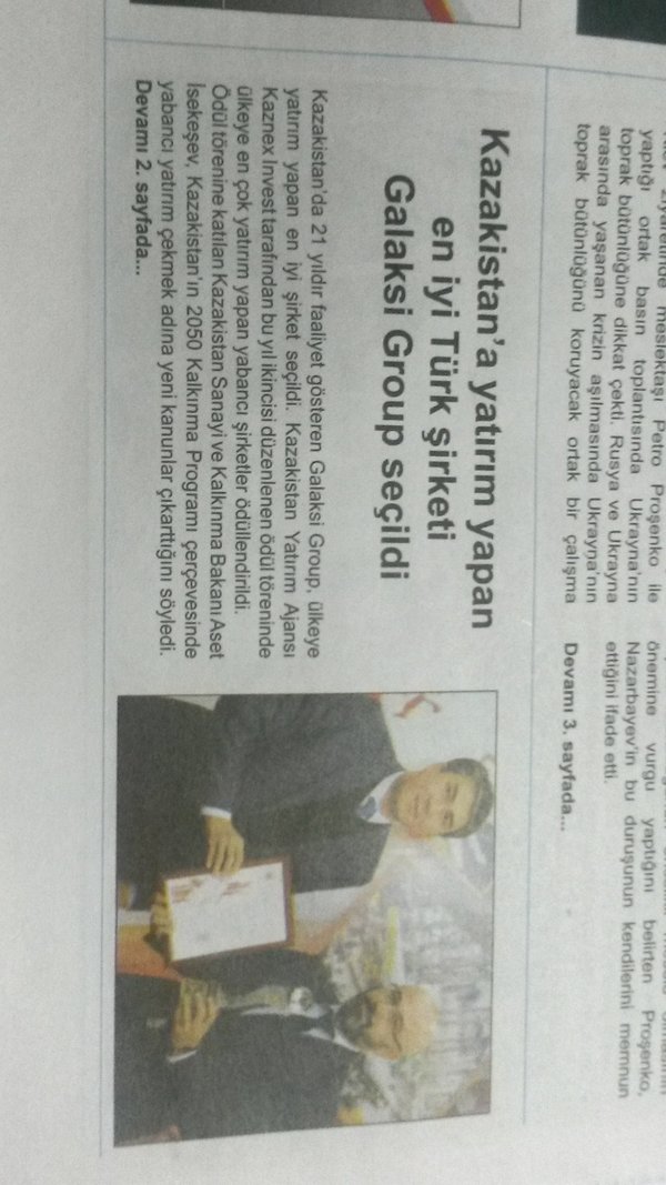 Читайте в новом номере Казахстан Zaman (на турецком и казахском языках) — Galaksi group признан одним из лучших иностранных инвесторов!