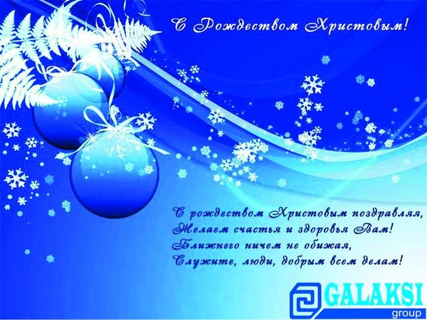 Уважаемые клиенты Galaksi group! В этот чудесный праздник Новый Год, хотелось бы пожелать исполнения всех заветных желаний, крепкого здоровья, искреннего смеха. Пусть в жизни будет больше ярких и красочных моментов, взаимной любви, счастья и добра. Все беды и тревоги, повстречавшиеся на Вашем пути, пусть обходят стороной. Всего наилучшего в наступающем году!