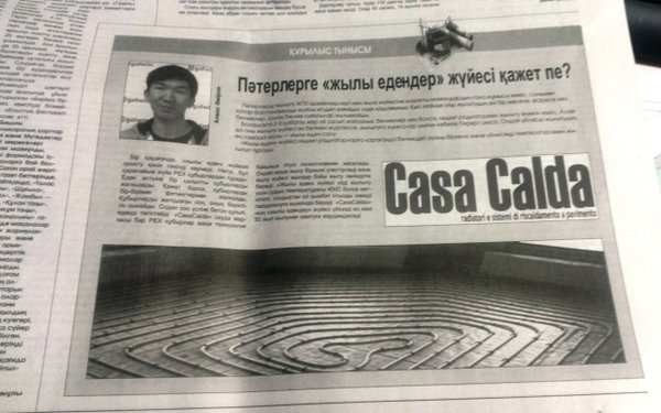 Galaksi group продолжает серию публикаций в газете «Казахстан Zaman». Еженедельно мы публикуем статьи о новинках нашей компании, отчеты об интересных событиях, происходящих в строительной индустрии и пр. Читайте газету «Казахстан Zaman» и будьте в курсе всех событий, происходящих в Galaksi group! Тема № 43 от 30/10/2014 – новый бренд на рынке РК – теплые полы под брендом Casa Calda!