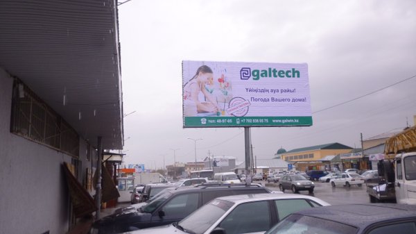 Билборды в городе Шымкент: 1) Билборд galtech (рынок «Самал»); 2) Билборд galwin (ул. Рыскулова-просп. Кунаева).