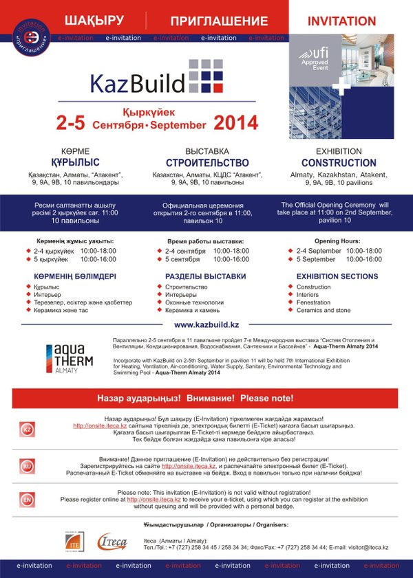 Уважаемые клиенты! Приглашаем Вас посетить наш стенд (г. Алматы, ВК «Атакент», павильон № 9, стенд № 353) в рамках выставки KazBuild-2014, которая будет проходить 2—5 сентября 2014 г. Информируем Вас о том, что данное приглашение требует регистрации. Для этого Вам/Вашим клиентам/партнерам необходимо пройти на сайт по ссылке, выбрать в списке выставку KazBuild2014 и внести свои данные, на почту будет направлен электронный билет, который необходимо распечатать и на выставке обменять на бейдж visitor, который будет давать право бесплатного входа… — Читать дальше
