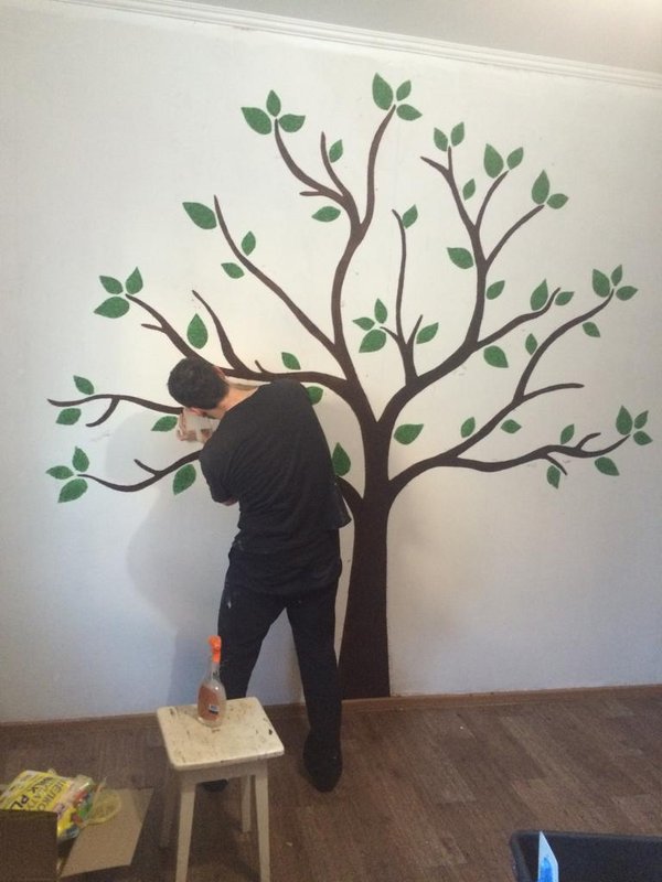 и все же просто положить жидкие обои. И именно вчера была закончена детская, которую я долго-долго делал. Прямо гештальт закрыл. Напомню, что вообще с заказчиками я познакомился около 3х лет назад. Я сделал им кухню из жидких обоев с рисунками на стене в виде кофейных чашечек. Позже, где-то через год, меня пригласили сделать три стены в детской комнате для двух маленьких братьев. Тогда-то я и сделал футболистов. И вот вчера комната бала закончена, когда я нанес последние жидкие обои на 4й стене. Вообще, это здорово, когда клиенты обращаются снова и снова. Значит, доверяют мне как специалисту по жидким обоями. Это приятно. А ремонт растянулся на три года, и на самом деле это не предел. Очень часто ко мне обращаются именно для того, чтобы я продолжил ремонт. Я перехожу от комнаты к комнате. И это отрадно, что люди заказывают жидкие обои, а отказываются от других настенных покрытий, в частности, от рулонных обоев. Такие вот наблюдения. Внизу фото и видео.