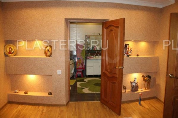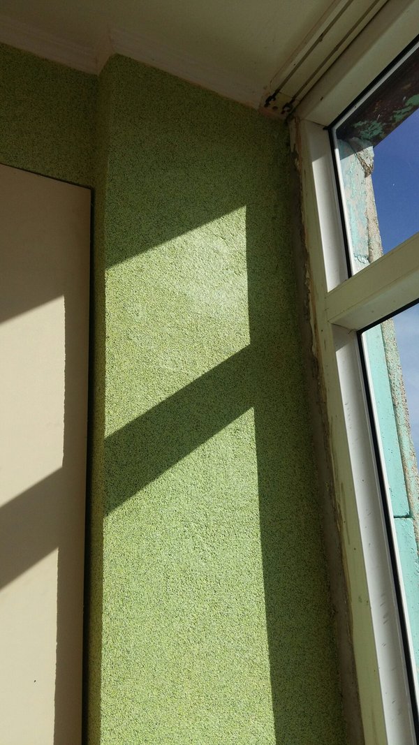 Что делать, если столкнулись с ситуацией, когда раствор кончился на средине стены? Такая проблема может случиться у новичков в индустрии монтажа жидких обоев. Мой совет — снять уже положенную текстуру со стены на площади до угла. Следом нужно приготовить новый раствор необходимым объемом и смешать с уже снятыми со стены жидкими обоями. И продолжать монтаж.