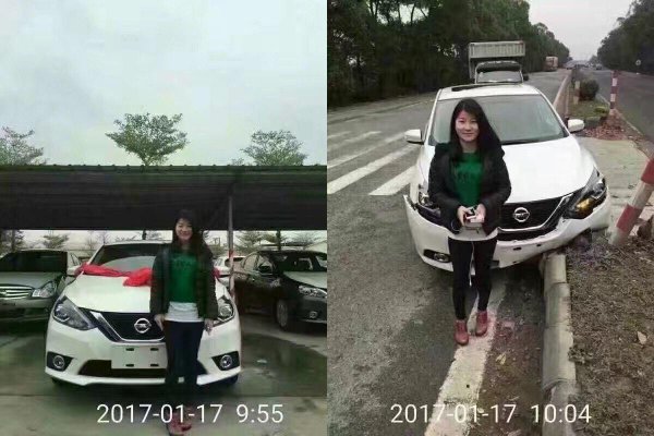 С боевым крещением: фото новой машины с разницей в несколько минут Покупка новой машины это всегда праздник. Но иногда радостное событие может в считанные минуты стать печальным Примером тому является недавний случай в Китае. Сначала девушка выложила снимок свежеприобретенного Nissan с бантом, а спустя считанные минуты – после боевого крещения. Как выяснилось позднее, девушка успела проехать чуть больше 1-го километра прежде, чем «обновить» автомобиль. Источник: