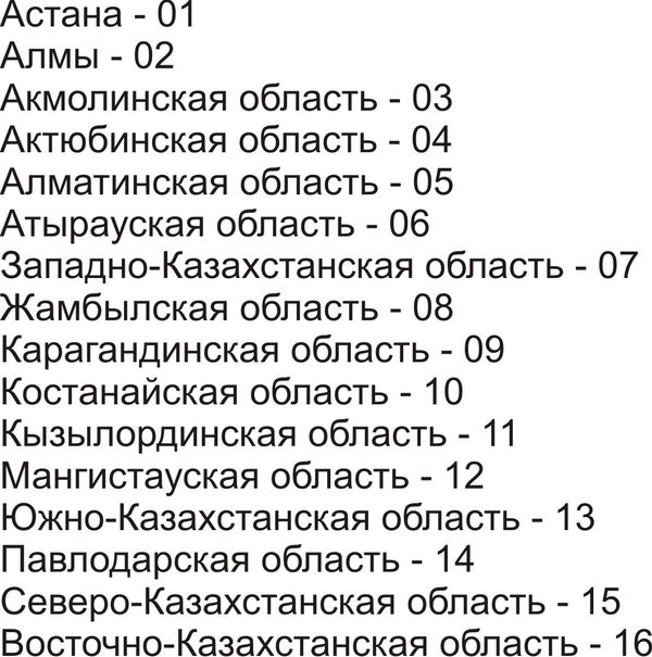 Коды регионов на казахстанских номерах Сохрани, пригодится