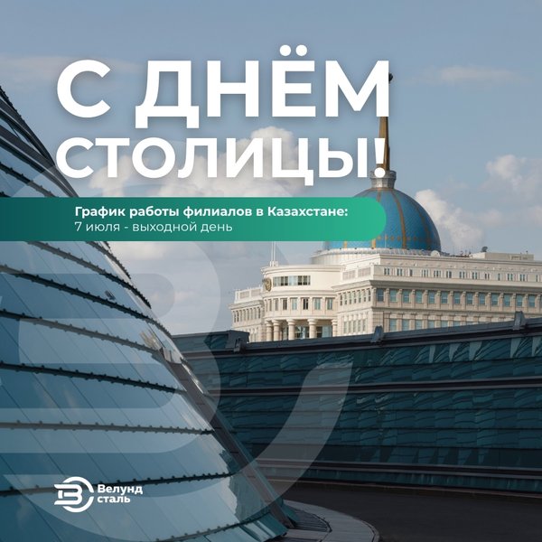 С Днем Столицы Казахстана! Нур-Султан — это город будущего, образец мощи Республики Казахстан. Сегодня Нур-Султан меняет свой вид, с каждым годом становясь все краше. Пусть главный город страны не останавливается на достигнутом, продолжает развиваться! От всей души желаем всем казахстанцам благополучия, здоровья, добра и новых свершений! Процветания Республике Казахстан! ️ Уважаемые клиенты, обратите внимание на график работы офисов продаж: Казахстан — 6-е июля выходной день. Россия — работает в обычном режиме.