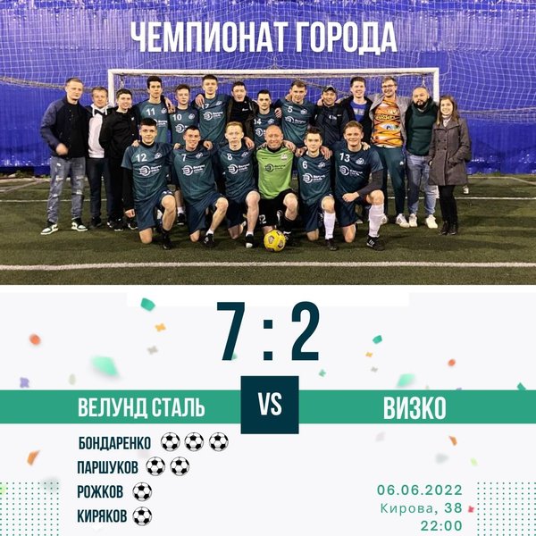 Велунд Сталь (07.06.2022): И снова победа за нами! На этот раз мы ушли с большим отрывом, забив 7 мячей в ворота противника ⠀