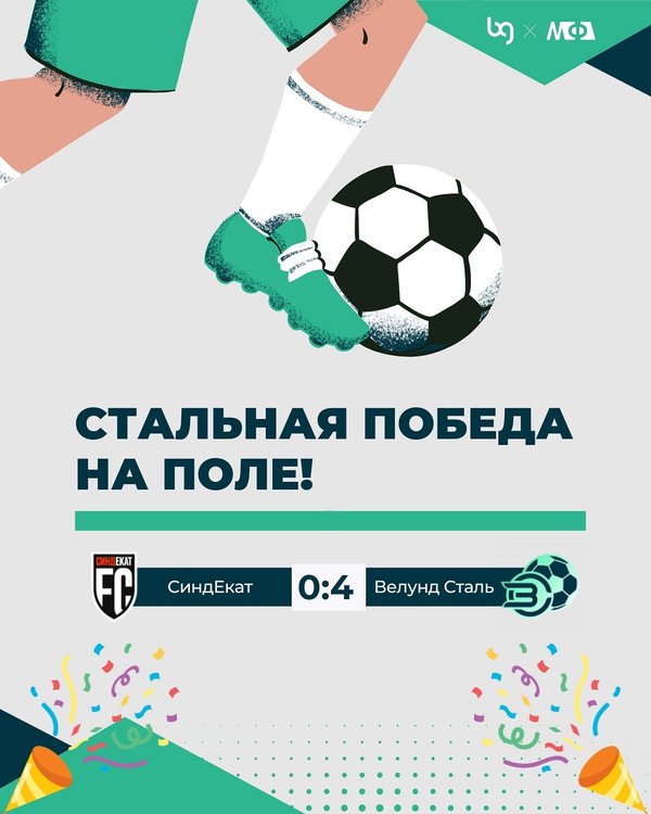 27 ноября футбольная команда «Велунд Сталь» провела яркий матч и уверенно обыграла «СиндЕкат» со счётом 0:4 в Бантер Лиге! Игра прошла динамично: быстрые атаки, точные удары и чёткая командная работа — всё сложилось в красивую и заслуженную победу. Поздравляем ребят с отличным результатом! Пусть впереди будет ещё больше энергии, уверенности и ярких матчей. Мы гордимся нашей командой и поддерживаем каждый их шаг к новым победам! ️